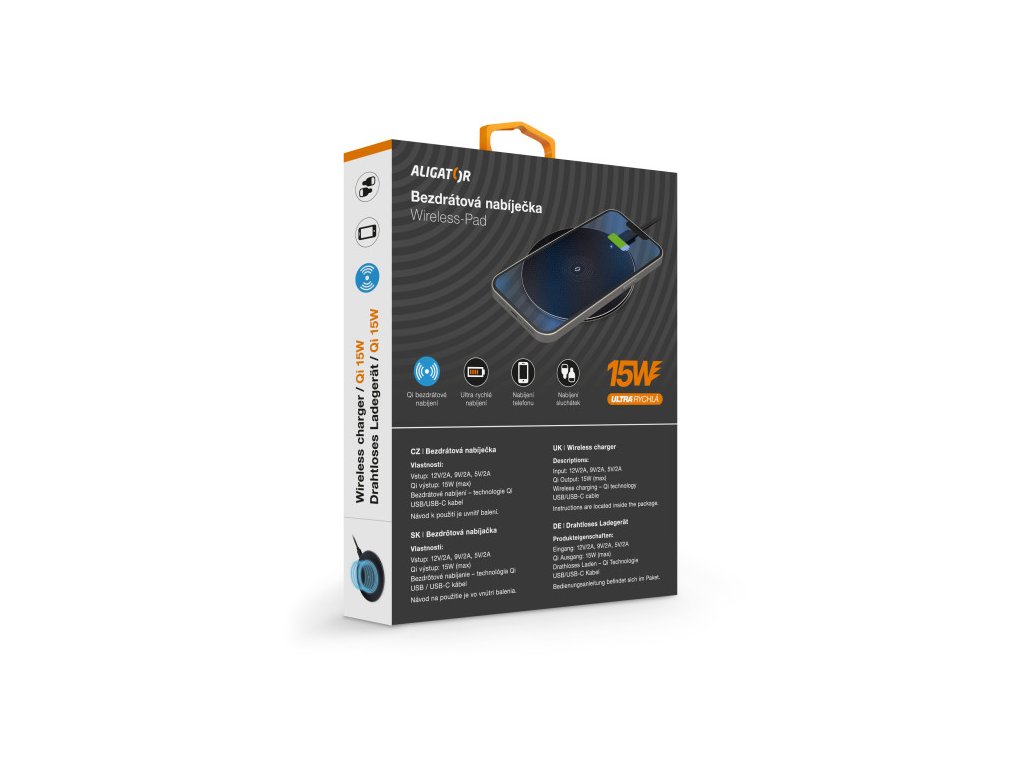 Technologie Qi používá k přenosu elektrické energie elektromagnetické pole s adaptivním řízením výkonu. Díky tomu je možné bezpečně a snadno nabíjet telefon nebo sluchátka. Aligator Wireless-Pad umožňuje bezdrátově nabíjet moderní telefony výkonem až 15W, což je 6x více než u základní USB nabíječky!