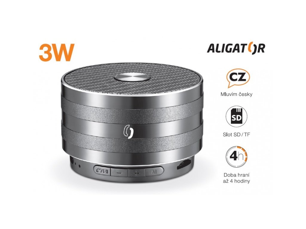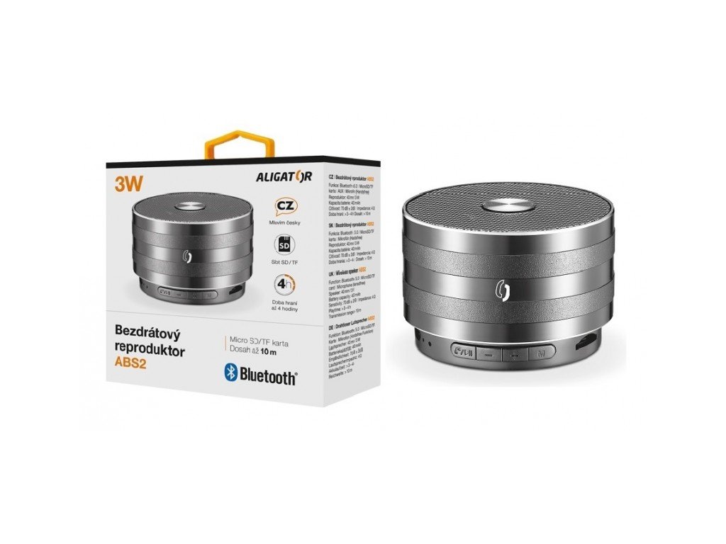 Bluetooth kovový reproduktor ALIGATOR ABS2, micro SD, černá