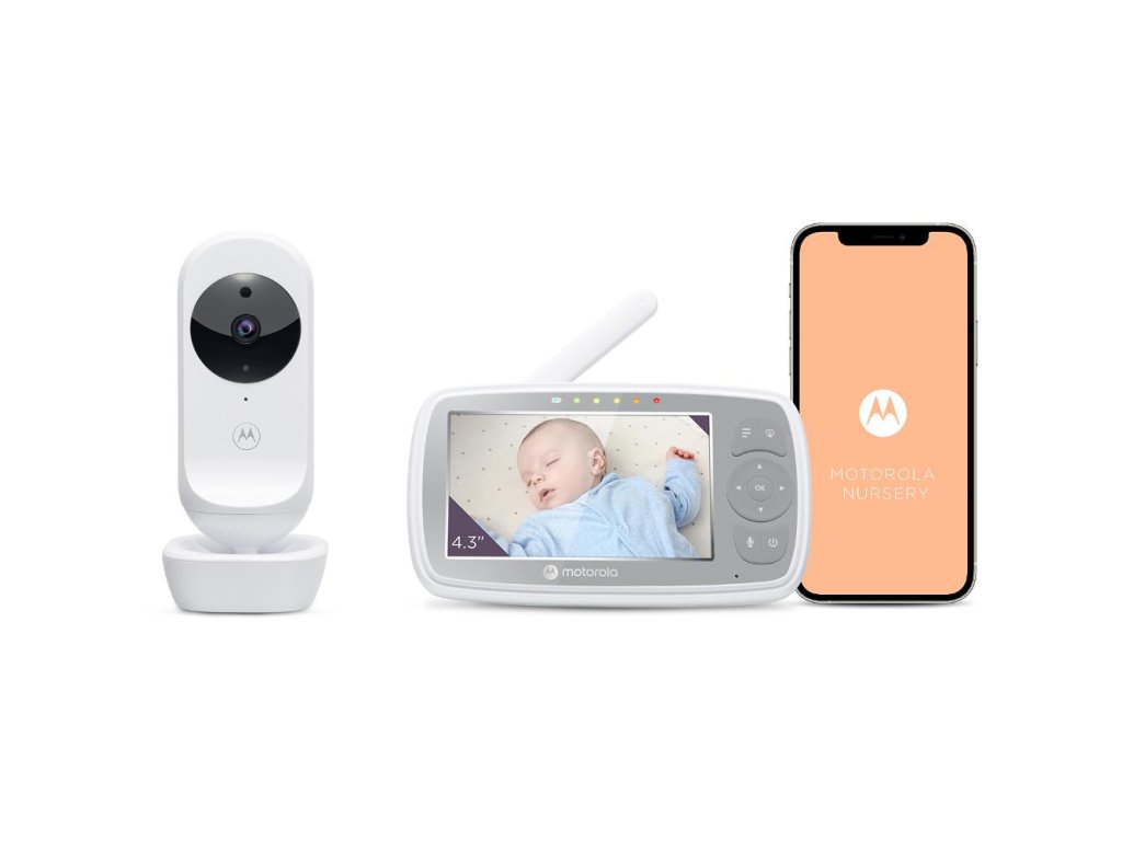 Motorola VM44 Connect obsahuje rodičovskou jednotku s 4,3" (10,9 cm) displejem a kameru, která se připojuje k aplikaci Motorola Nursery přes Wi-Fi a umožňuje HD (720p) video. Ať už doma, na cestách nebo v práci, mluvte se svým malým děťátkem obousměrným hovorem, pomozte mu spát pomocí ukolébavek, audioknih a vašeho osobního hlasového záznamu.