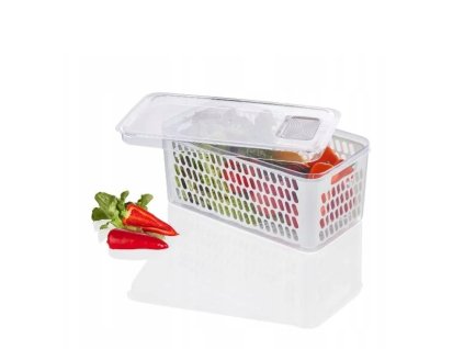 Livarno Home dóza na potraviny 5,5 l se vyjímatelným odkapávacím košíkem, poklopem s ventilem svěžesti a posuvným uzávěrem. Plastový, do myčky, vhodný do 0-45 °C.