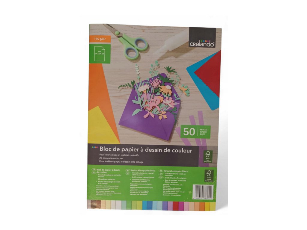 CRELANDO BLOK BAREVNÉHO PAPÍRU 24X34CM 50 KS