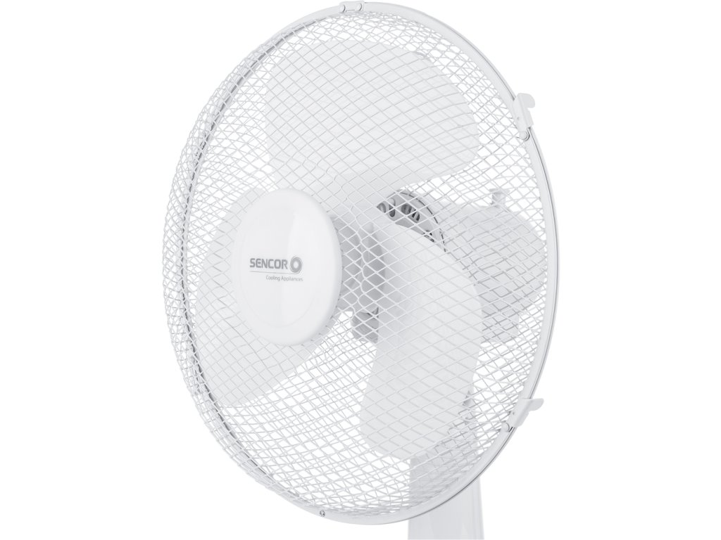 Stojanový ventilátor Sencor SFN 4060WH s průměrem 40 cm a možností použití i jako stolní. Nabízí 3 rychlosti, oscilaci, nastavitelnou výšku a tichý provoz.