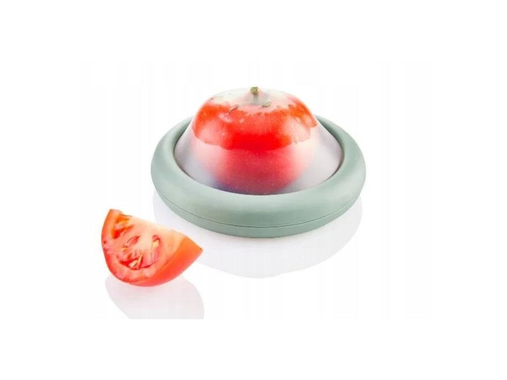 Odšroubujte, vložte rajče s průřezovou stranou ke dnu. Horní kryt přitlačíme pružným silikonovým rukávem a otočíme k zavření. Je vhodný i pro ovoce a zeleninu podobné velikosti.