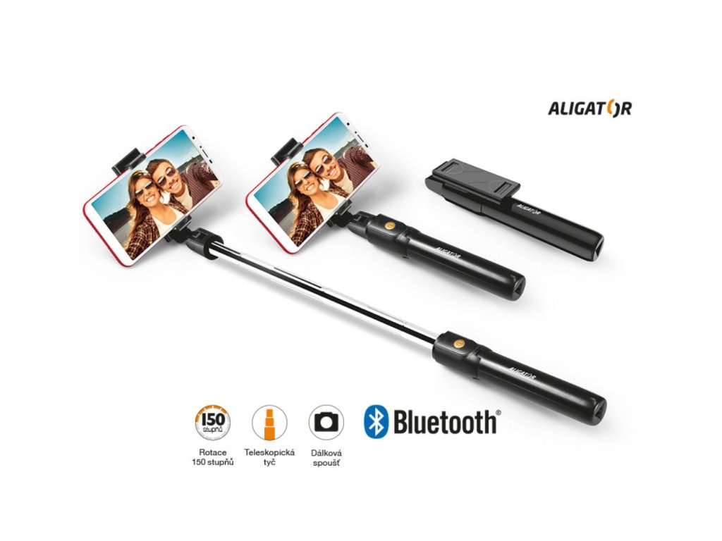 Teleskopická selfie tyč s Bluetooth vyjímatelným ovladačem a tripodem