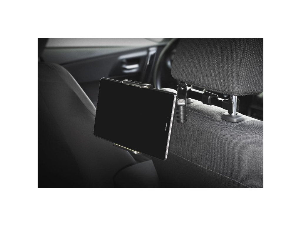 Univerzální výsuvný držák do auta pro tablety do velikosti až 10# s otočným kloubem, který umožní otočit tablet o 360°. Výsuvný mechanismus pro nastavení optimální vzdálenosti tabletu od uživatele. Otočný kloub s možností otočení o 360° pro nastavení optimálního úhlu. Díky montáži držáku do prostoru opěrky hlavy mají spolujezdci na zadních sedačkách možnost sledovat filmy nebo hrát hry během dlouhé cesty na dovolenou. Pogumované čelisti držáku tablet zafixují a ochrání ho proti pádu při nerovnosti na silnici.
