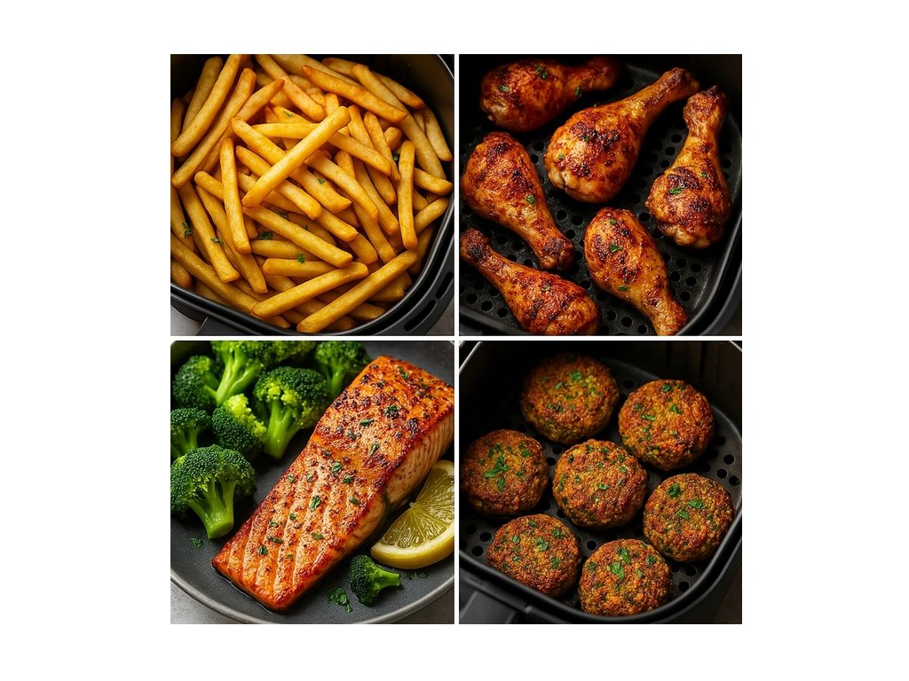 Představte si obědy plné chuti a křupavosti, ale bez smažení v hlubokém tuku. Hranolky, křidélka, zelenina, ryby a dokonce i domácí koláče – vše je připraveno horkým vzduchem s minimálním množstvím nebo bez kapek oleje.