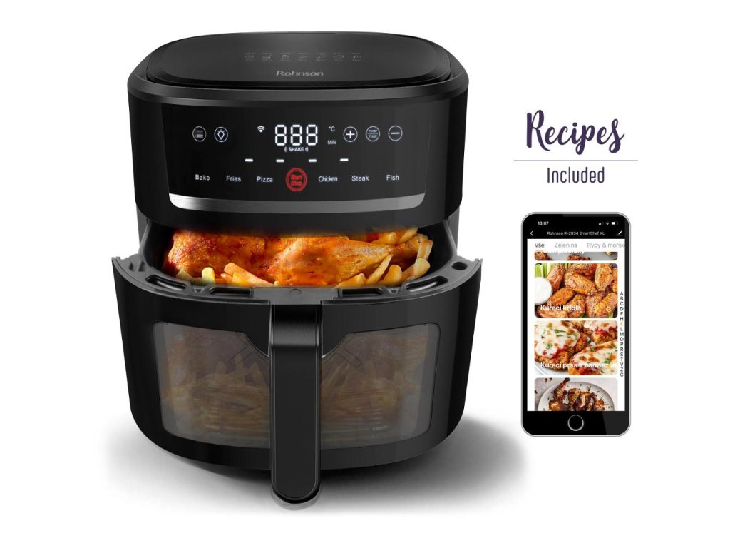 Horkovzdušná fritéza se skleněnou nádobou