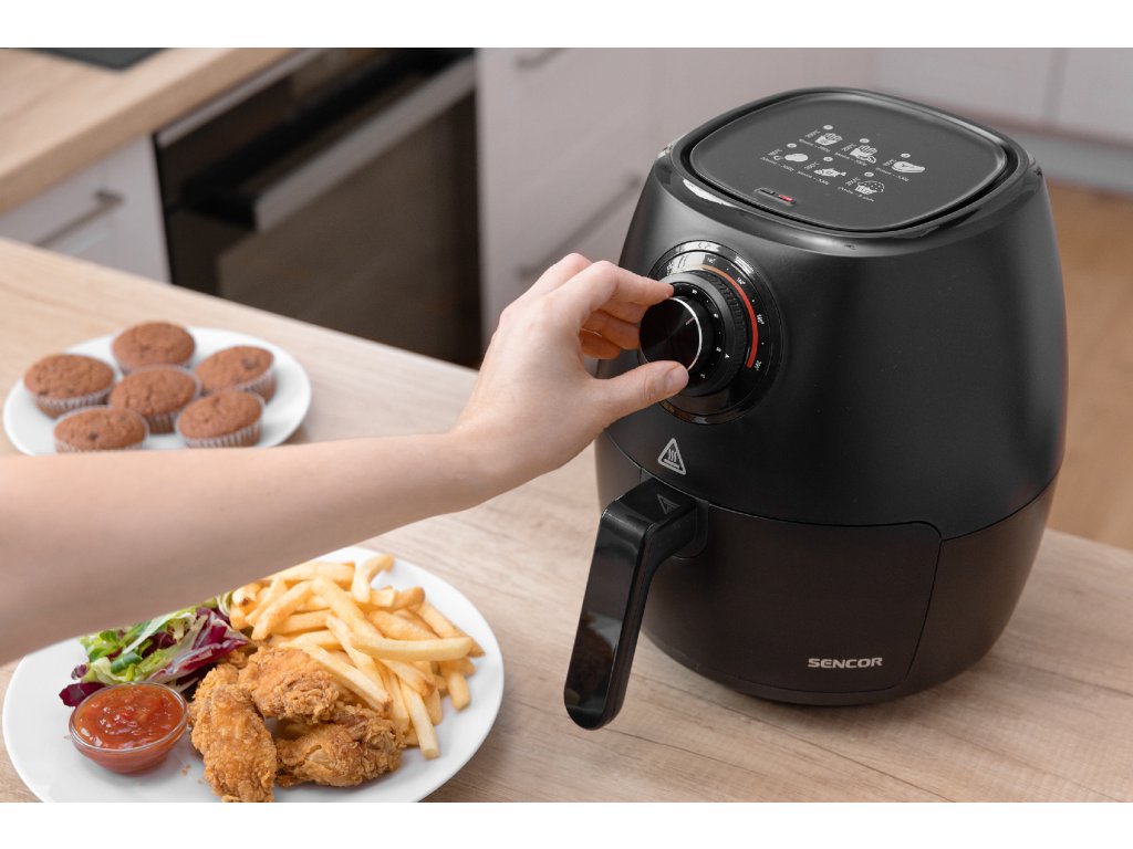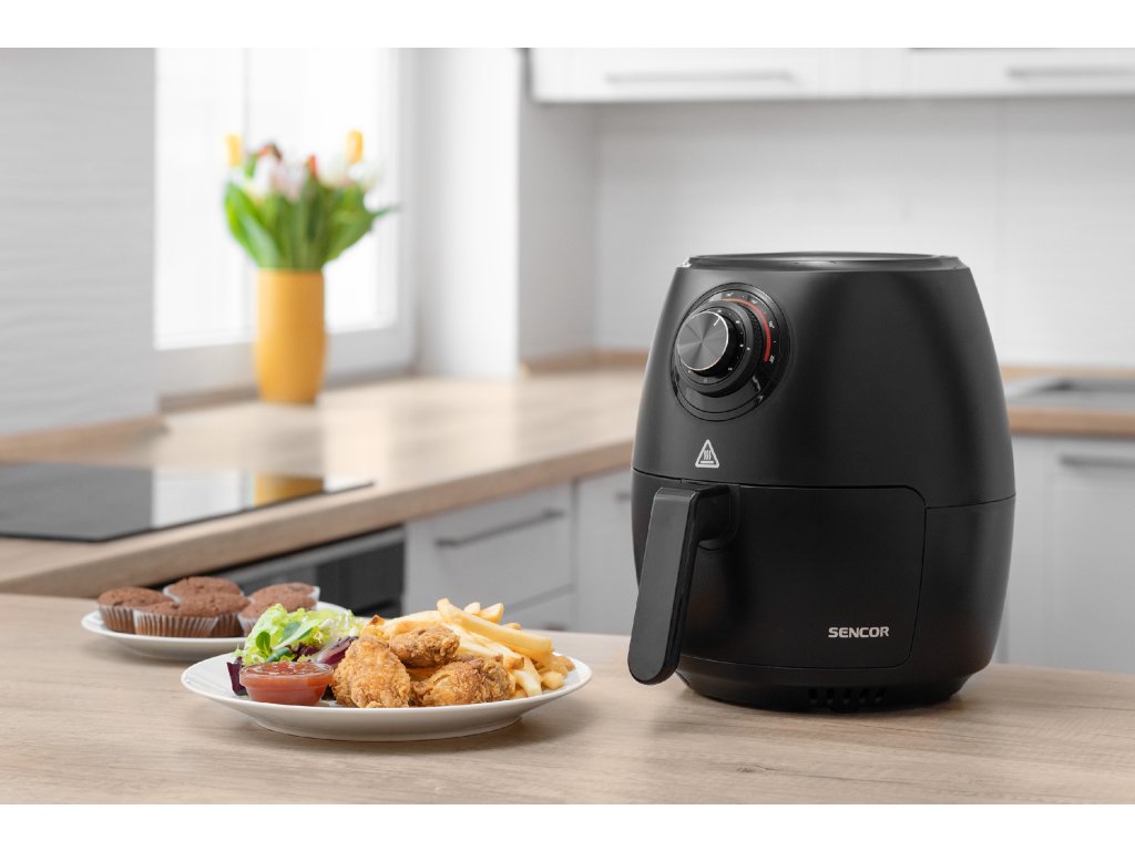 - Systém fritování bez použití oleje – zdravější alternativa k tradičnímu fritování, redukce zápachu