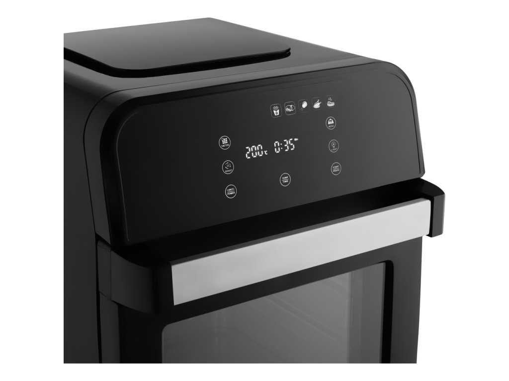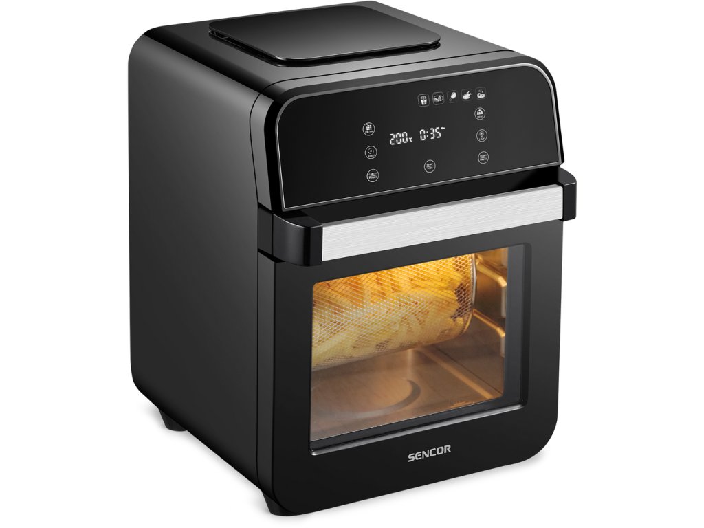 5 volitelných programů na přípravu pokrmů: Mražené hranolky / Doma připravené hranolky / Kuřecí stehýnka / Smažené kuře / Steak