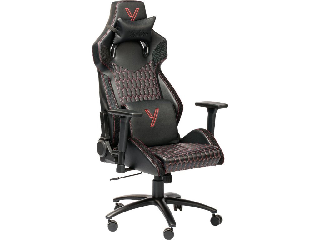 Ergonomické herní křeslo Yenkee YGC 110RD GHOST – PU potah, studená pěna, 3D opěrky rukou, naklonění do 155°, robustní kovová konstrukce a nosnost 130 kg.