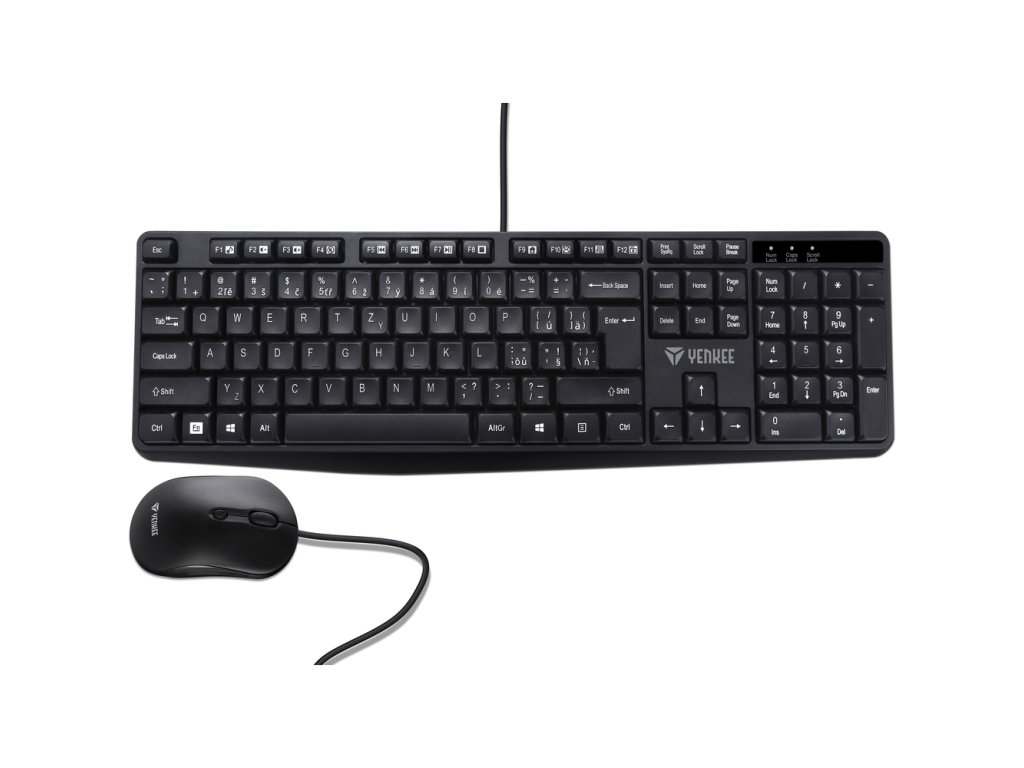 Drátový set klávesnice a myší je nejlepší řešení pro každodenní použití doma nebo v kanceláři. Kabelová USB sada je idealní volbou, pokud se nechcete starat o výměnu baterií a chcete mít trvanlivé a spolehlivé periferie pro práci s počítačem nebo notebookem. Ergonomická myš je vhodná pro použití pravou nebo levou rukou. Optický senzor s rozlišením 1600 dpi poskytuje přesnou a okamžitou odezvu kurzoru. Klávesnice je odolná proti rozlití a její drenážní systém může rozptýlit určitý objem rozlité kapaliny, aby nedošlo k poškození desky plošných spojů nebo jiných kritických částí. Klávesnice nabízí rozložení v plné velikosti s příjemným a přesným stiskem kláves.