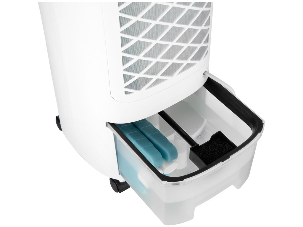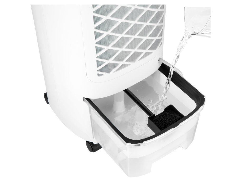 Do nádrže ochlazovače se vejdou až 3 litry vody. Je odnímatelná, snadno se plní a čistí. Chladící účinnost můžete ještě vylepšit použitím přibalených chladících náplní (které předchladíte ve svém mrazáku).