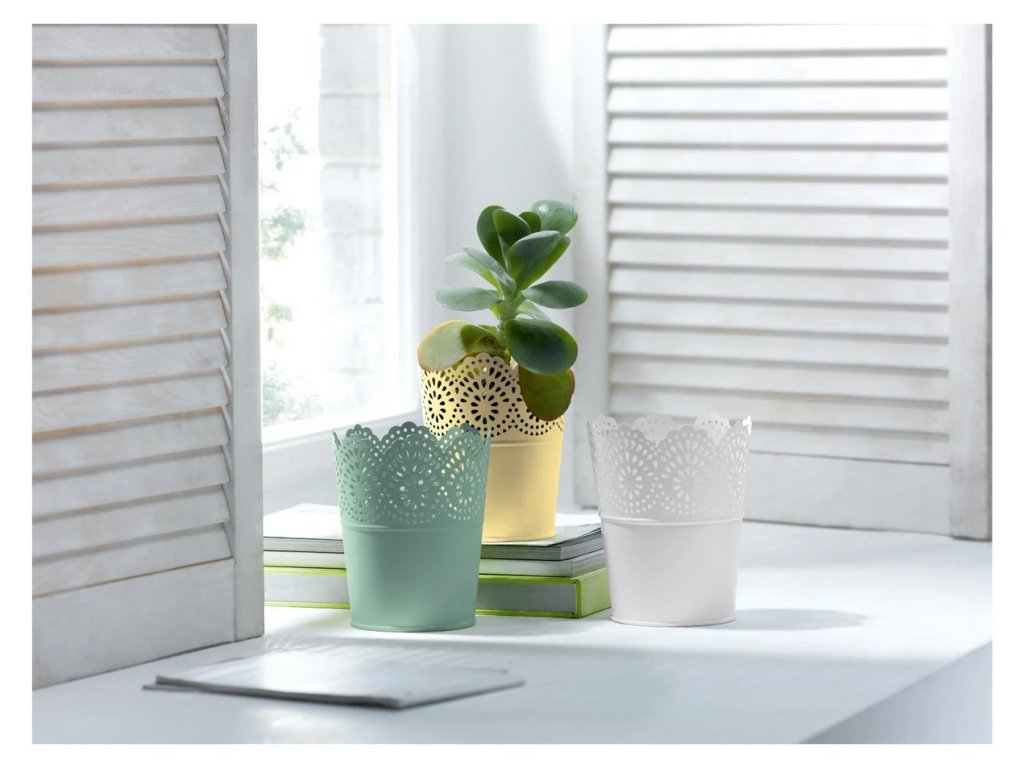 - Moderní kovové květináče s práškovou povrchovou úpravou, odolné vůči vlhnutí – vhodné jak do interiéru, tak na zastíněné venkovní prostory.