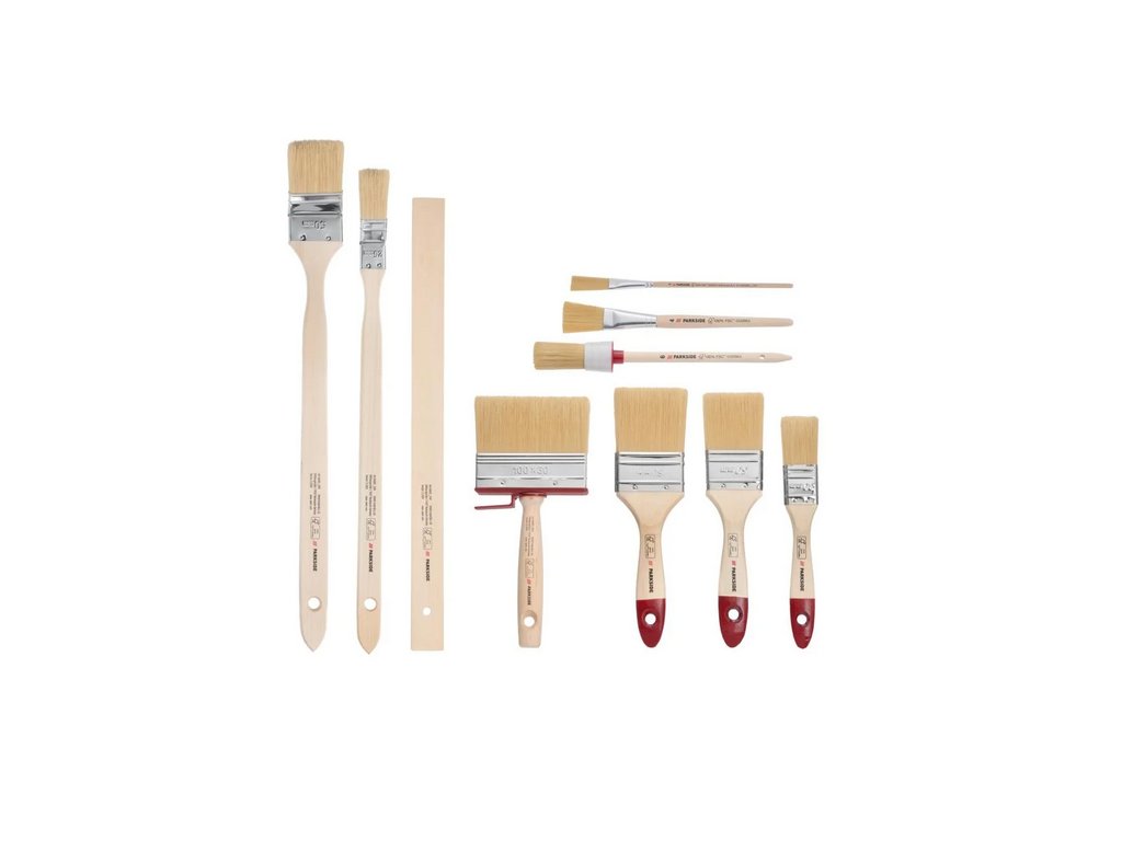 Parkside 10dílná sada štětců na lak – syntetické vlákna pro vysokou kryvost, různé tvary a šířky pro detailní i plošné malování, rukojeti z FSC dřeva, vhodné pro laky rozpouštědlové.
