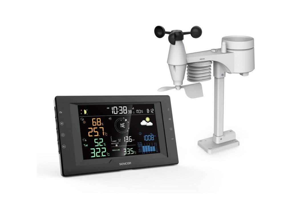 Nejdůležitější částí této stanice je inteligentní snímač 5v1, který poskytuje komplexnímeteorologické údaje. Měří rychlost a směr větru, zaznamenává srážky, teplotu i vlhkost. Bezdrátová komunikace s hlavní jednotkou funguje až do vzdálenosti 150 metrů. Můžete ho tak snadno umístit kamkoliv.