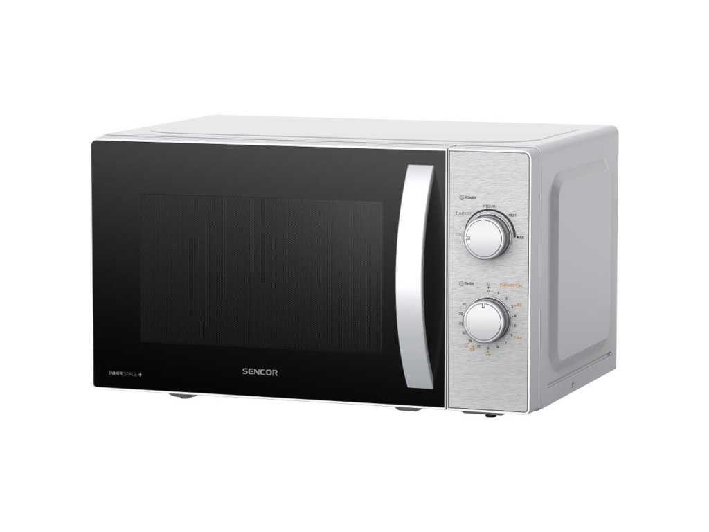 Mikrovlnná trouba Sencor SMW 1718WH s objemem 20 l a výkonem 700 W. Nabízí 5 úrovní výkonu, funkci rozmrazování, mechanické ovládání a bílý design.