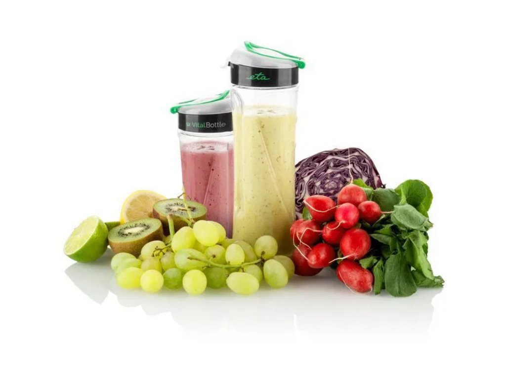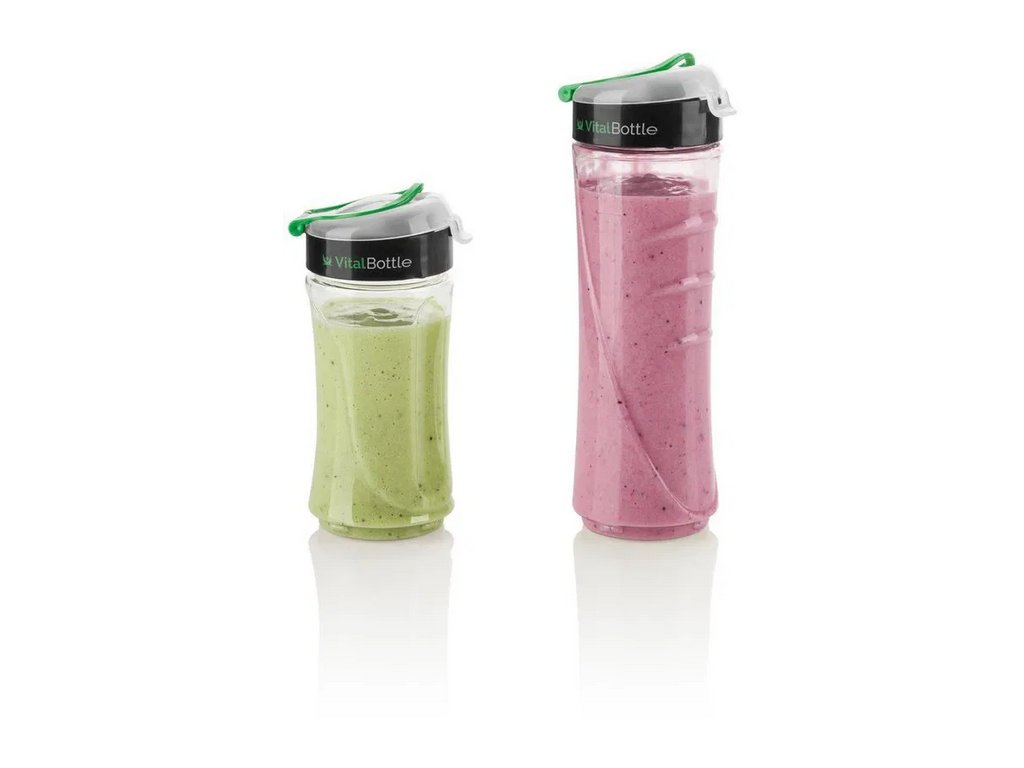 Součástí balení jsou hned 2 láhve; 0,6 l a 0,4 l. Každý člen rodiny si tak může umixovat svůj vlastní koktejl a vzít jej s sebou. Pro 0,6 l láhev jsme navíc přibalili neoprenový obal, aby si váš nápoj uchoval ideální teplotu.