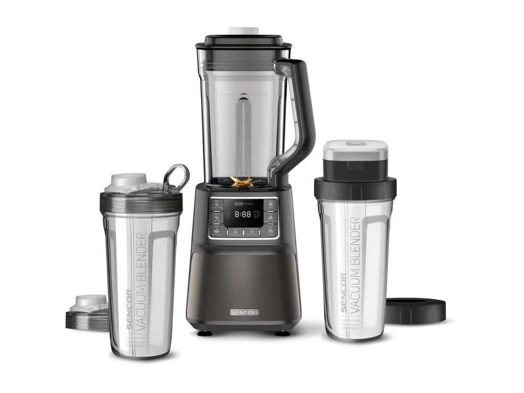 Balení obsahuje: 1,5 l tritanová (PCTG) mixovací nádoba,2x 0,7 l nádoba na uchování čerstvých nápojů (smoothie), vakuovací