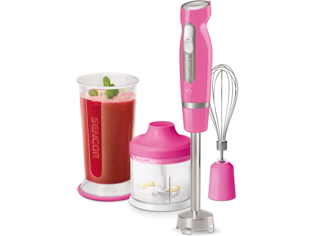 Příslušenství: Nádoba o objemu 700 ml s víčkem, 500 ml sekáček, šlehací metla