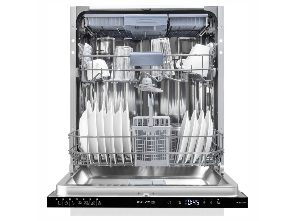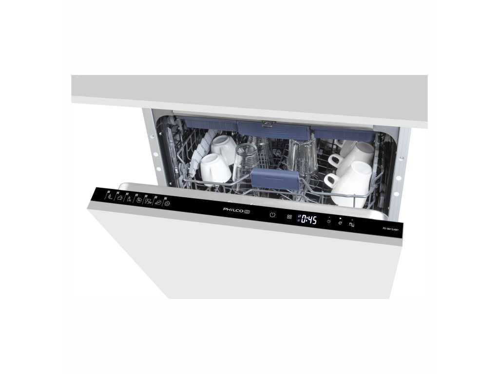 Vestavná myčka Philco PD 1367 EABIT v šířce 60 cm umyje 13 sad nádobí. Je vybavena funkcí TurboSušení pro nádobí čisté a suché tak, že je bez obav vyskládáte rovnou do linky.