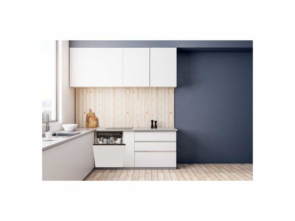 Tuto myčku v kuchyni zcela skryjete do kuchyňské linky, má plně integrovaný ovládací panel a není nutné řezat do soklu kuchyňské linky.