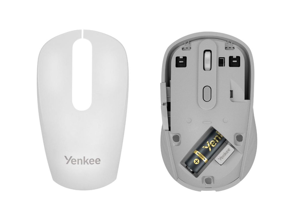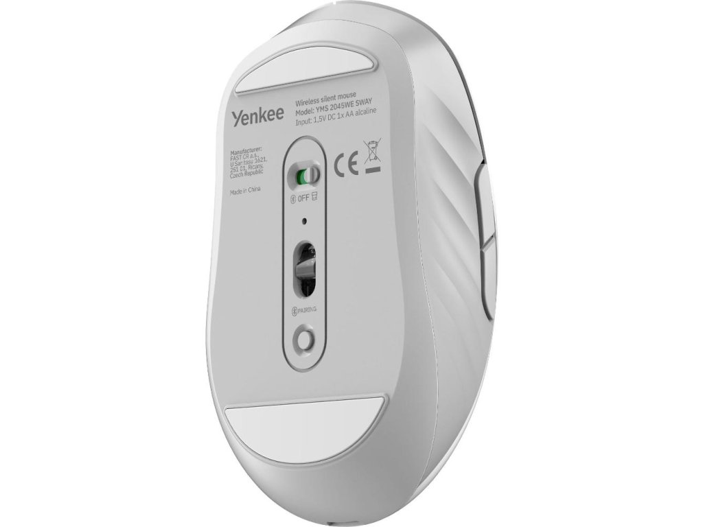 Univerzální bezdrátová myš Yenkee SWAY YMS 2045WE s duálním připojením (2,4 GHz USB přijímač + Bluetooth 3.0/5.0), tichými spínači, 6 tlačítky a nastavitelným DPI až do 1600 — ideální pro kancelář, práci na cestách i domácí použití.