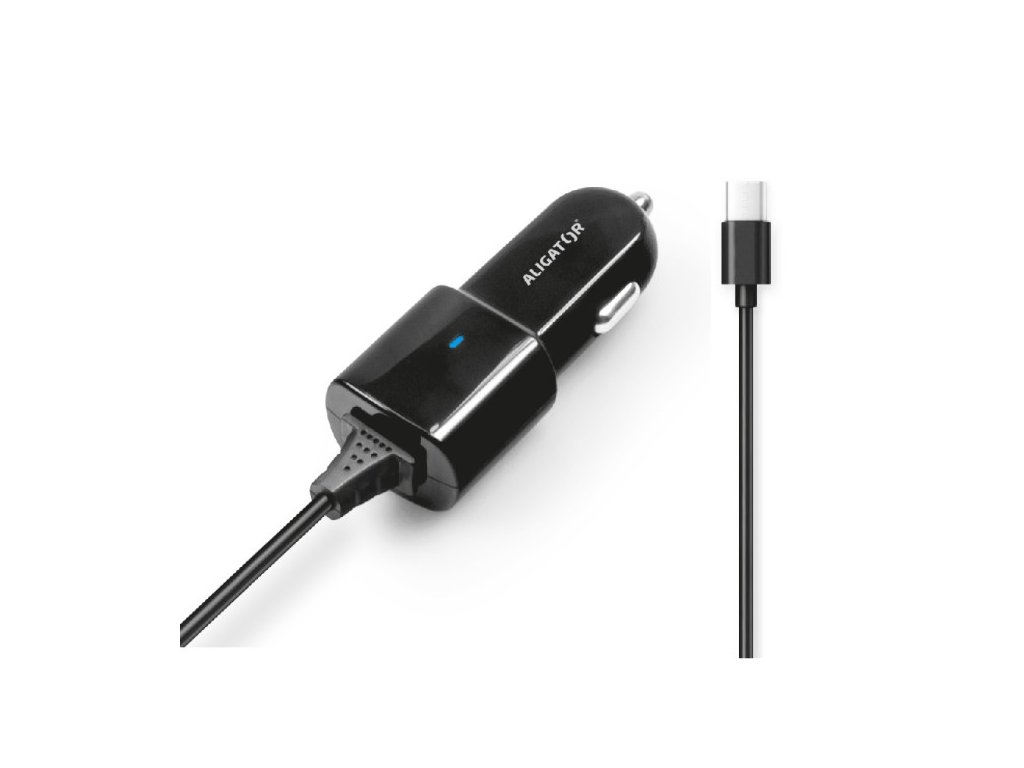 Nová výkonná nabíječka do auta řady "Turbo charge" v černém provedení je vybavena USB-C kabelem.