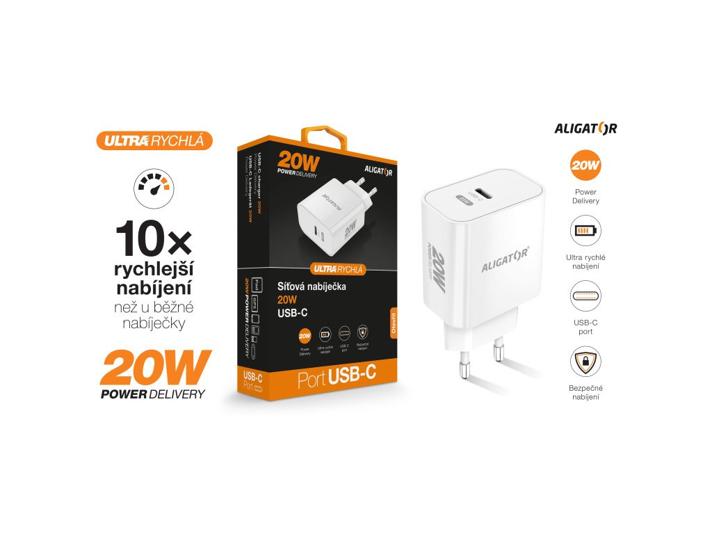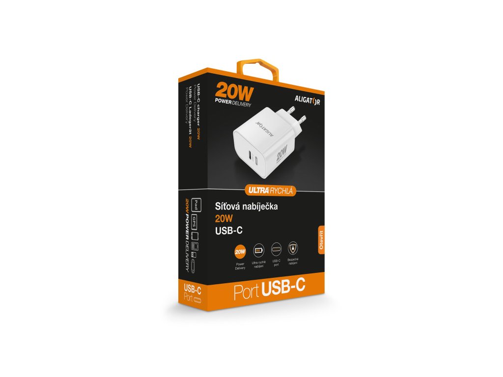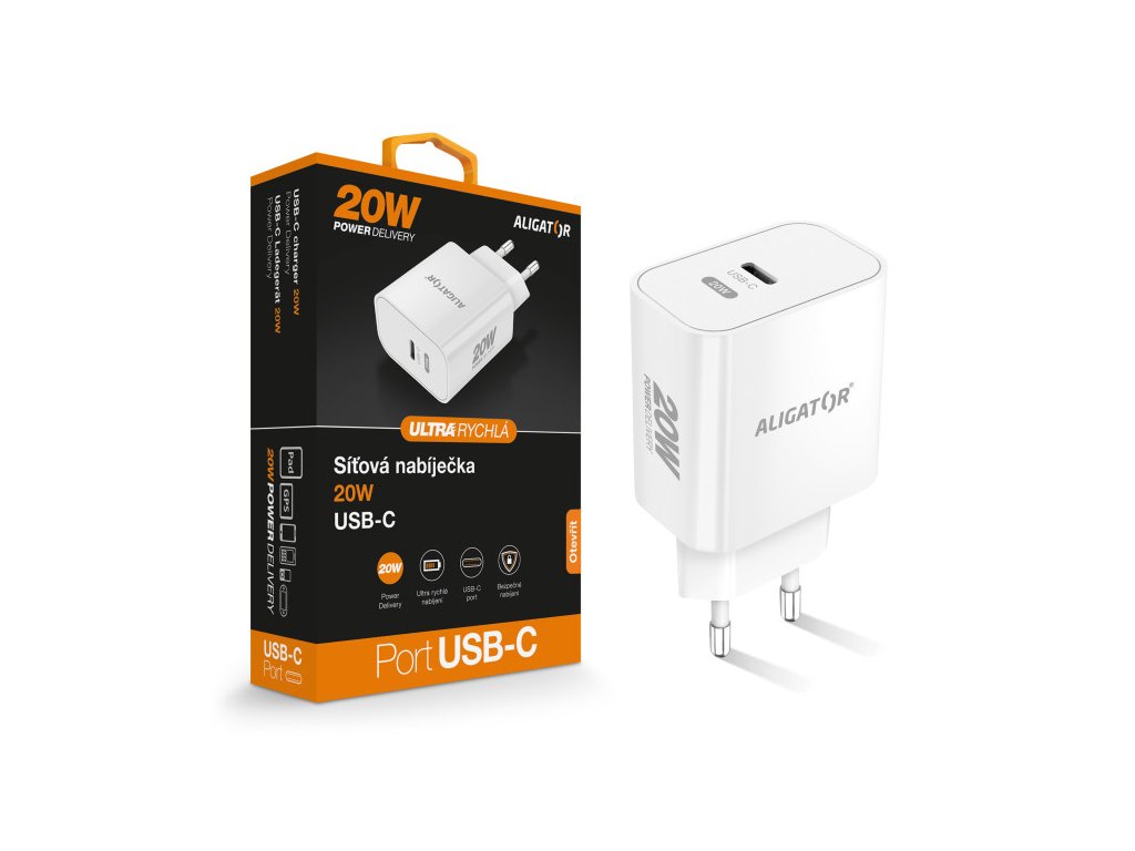Rychlá síťová nabíječka USB-C ALIGATOR Power Delivery 20W
