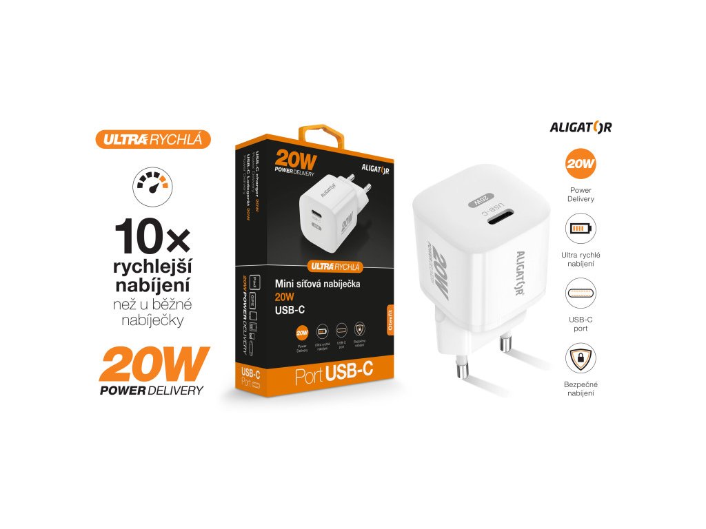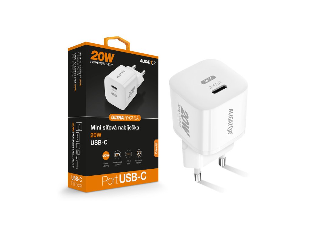 Rychlá mini síťová nabíječka USB-C ALIGATOR Power Delivery 20W
