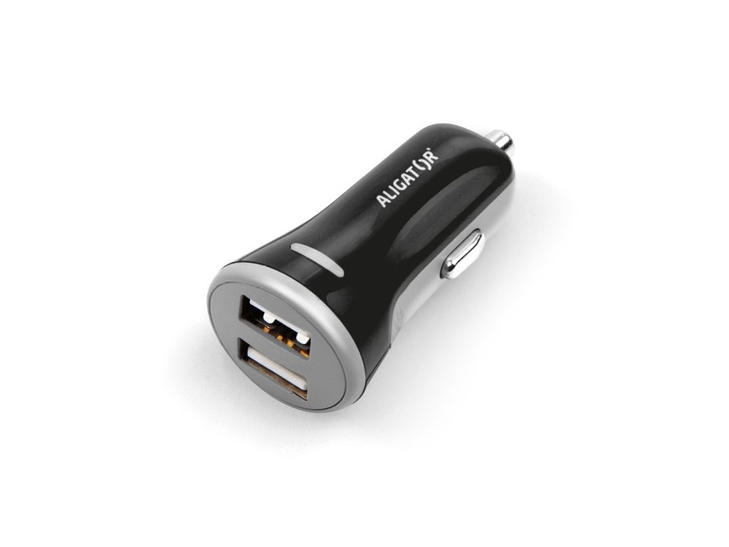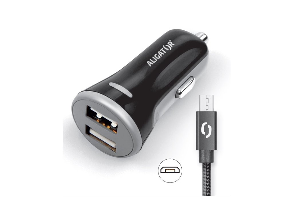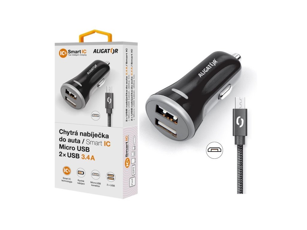 Chytrá nabíječka do auta ALIGATOR 3.4A, 2xUSB, smart IC, černá, micro USB kabel 2A