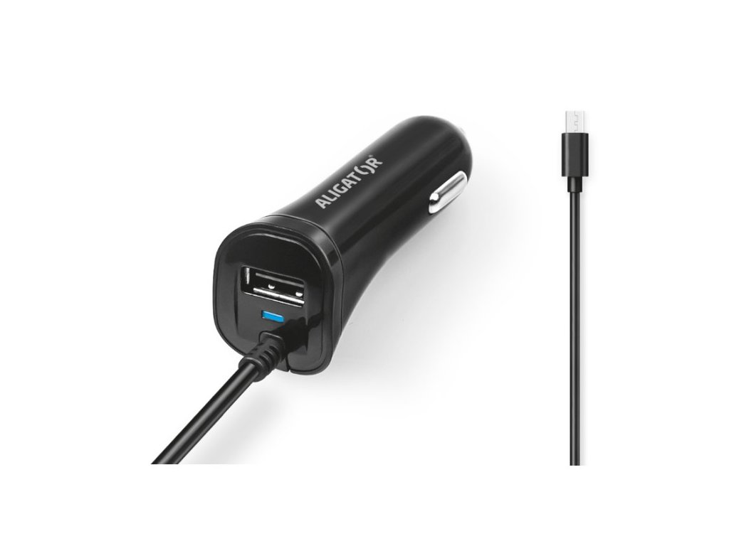 Nová výkonná nabíječka do auta řady "Turbo charge" v černém provedení je vybavena microUSB kabelem a USB portem.