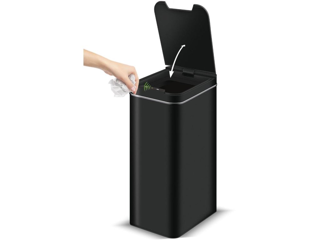 Bezdotykový odpadkový koš Lamart LT8052 o objemu 50 l s pohybovým senzorem a elegantním černým designem. Hygienické a pohodlné použití bez dotyku.