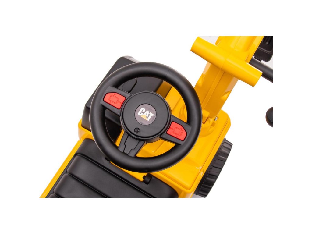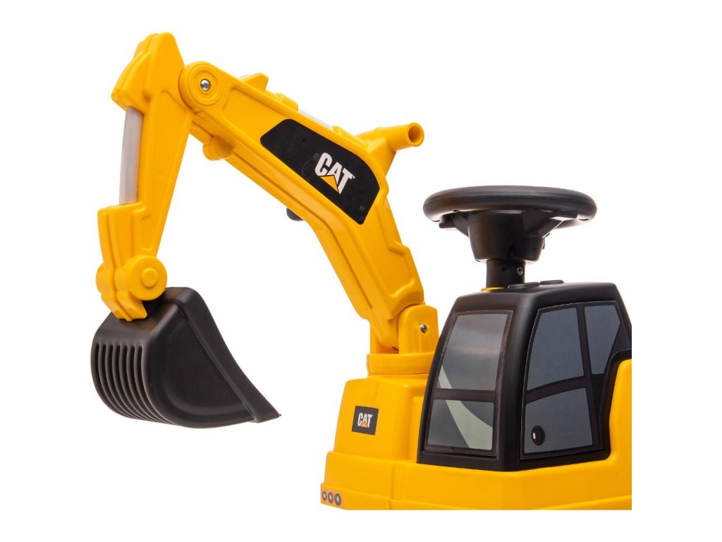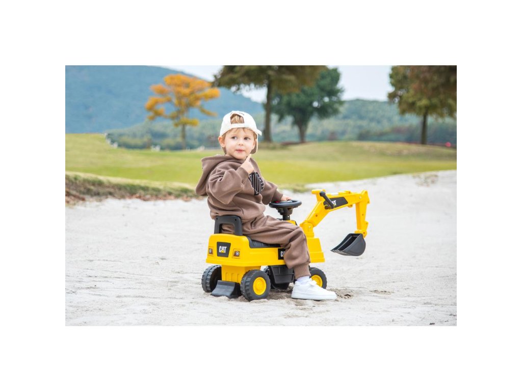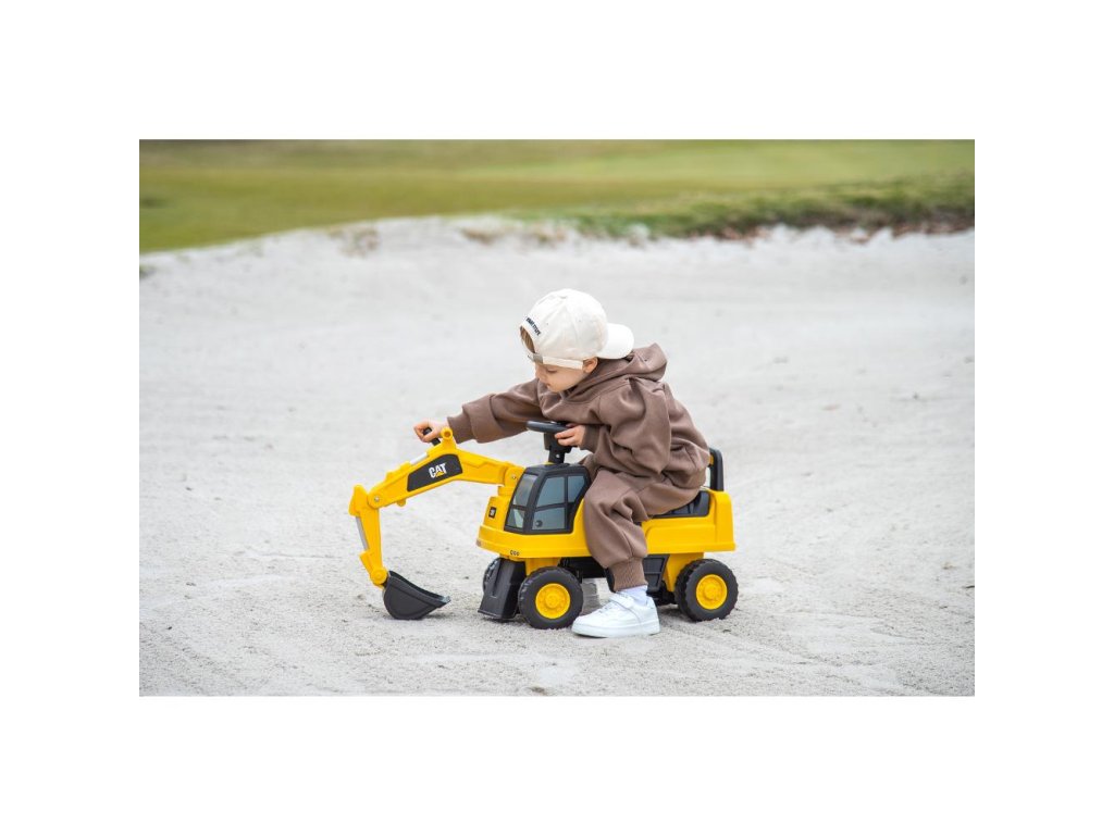 Dětské odražedlo jako malý bagr s licencí CAT připravený pro každou dětskou stavbu