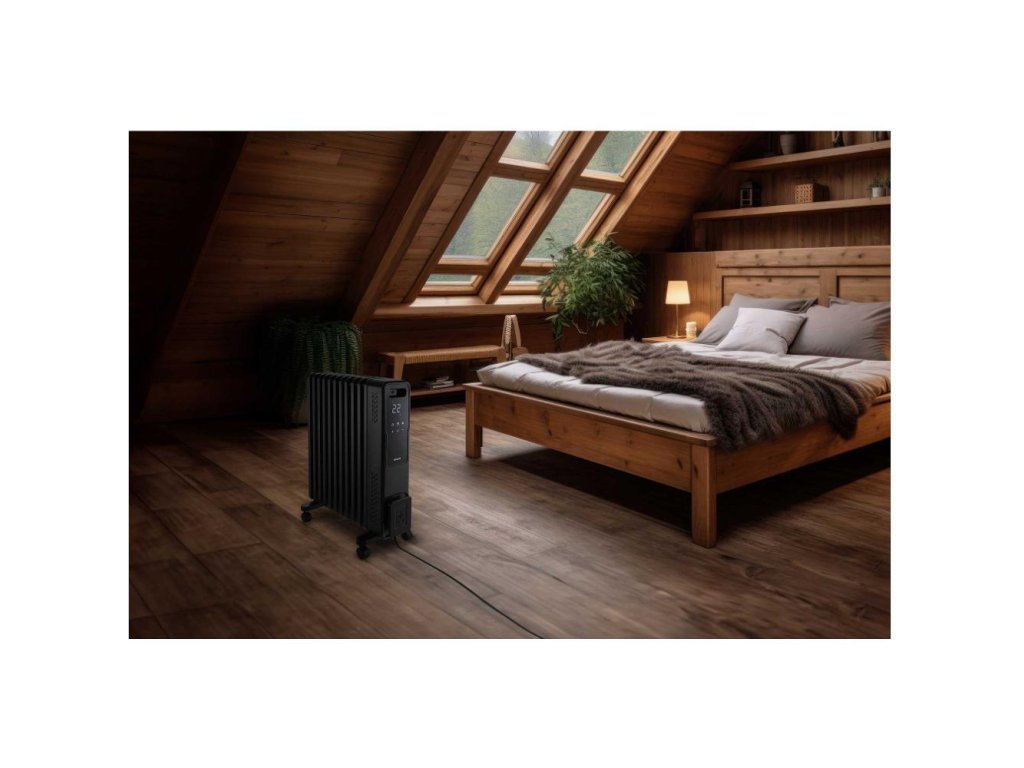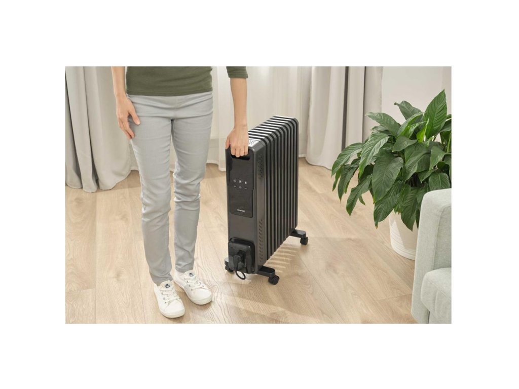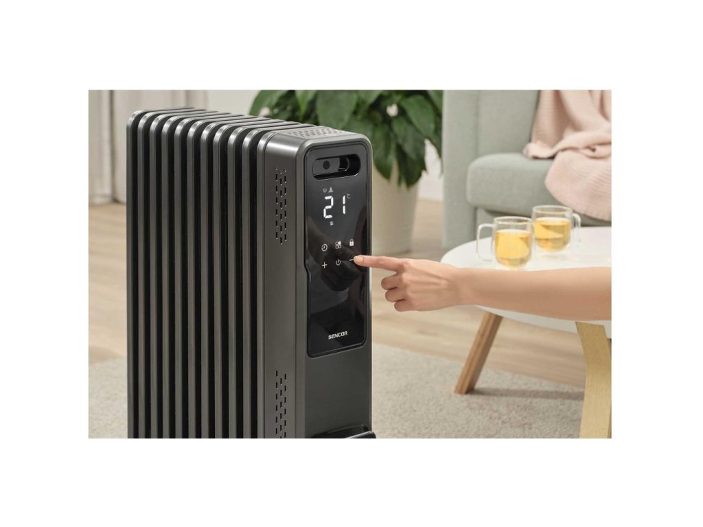 Všude tam, kde si potřebujete zatopit či přitopit, oceníte bezhlučný provoz, rychlý náběh topného výkonu i vysokou akumulační schopnost chytrých digitálních olejových radiátorů SENCOR s 11 topnými články FLAT SHAPE v elegatní šedé (Silver Black) barvě.