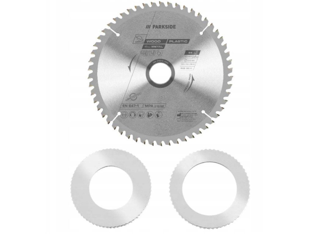 Kvalitní pilový kotouč z tvrdokovu s dlouhou životností, vhodný pro zkracovací a pokosovou pilu PKS(B) 1500 od PARKSIDE, jakož i pily s vhodným průměrem a upnutím 30, 20 nebo 16 mm (např. PARKSIDE, Bosch, Black & Decker, Einhell, Makita, Metabo)