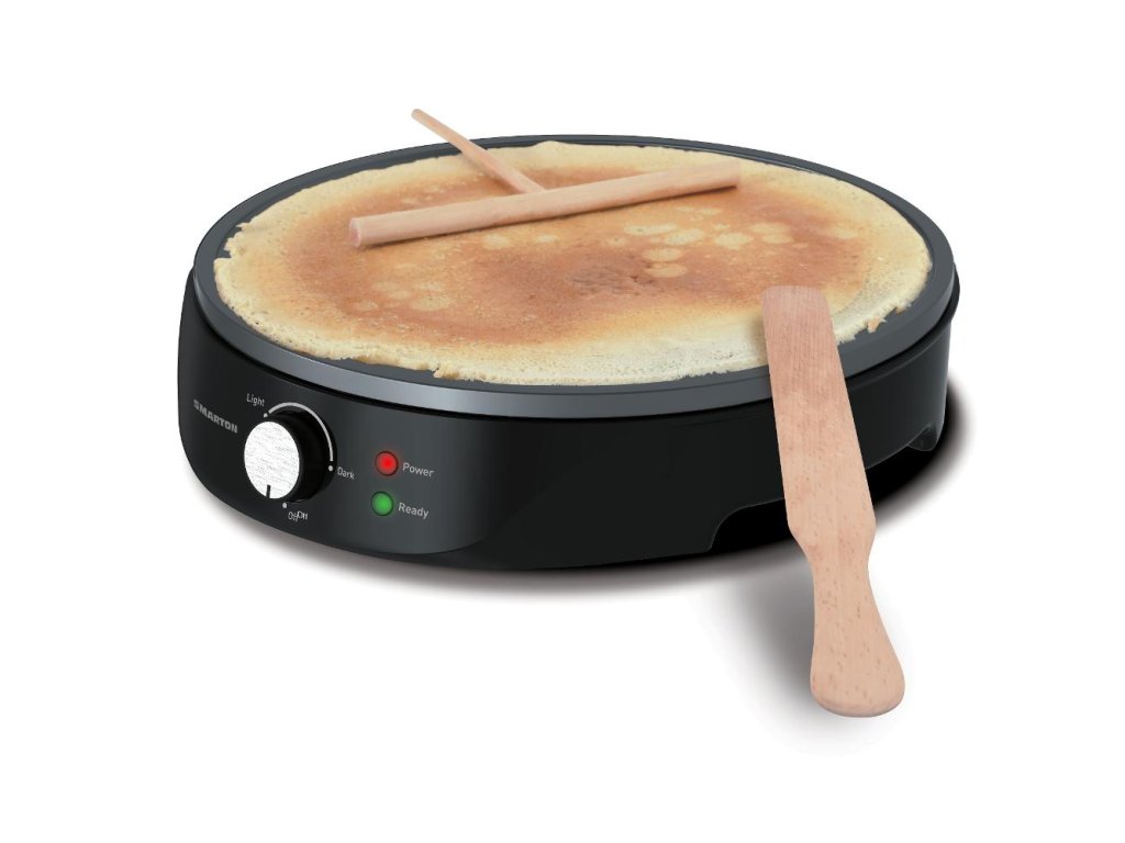 S palačinkovačem Smarton CM 300 si můžete i doma během pár okamžiků vychutnat dokonale připravené palačinky. Díky nepřilnavé pečicí ploše o průměru 30 cm máte dostatek místa i na ty největší palačinky, zatímco výkon 1 200 W zajistí rychlé a rovnoměrné pečení.