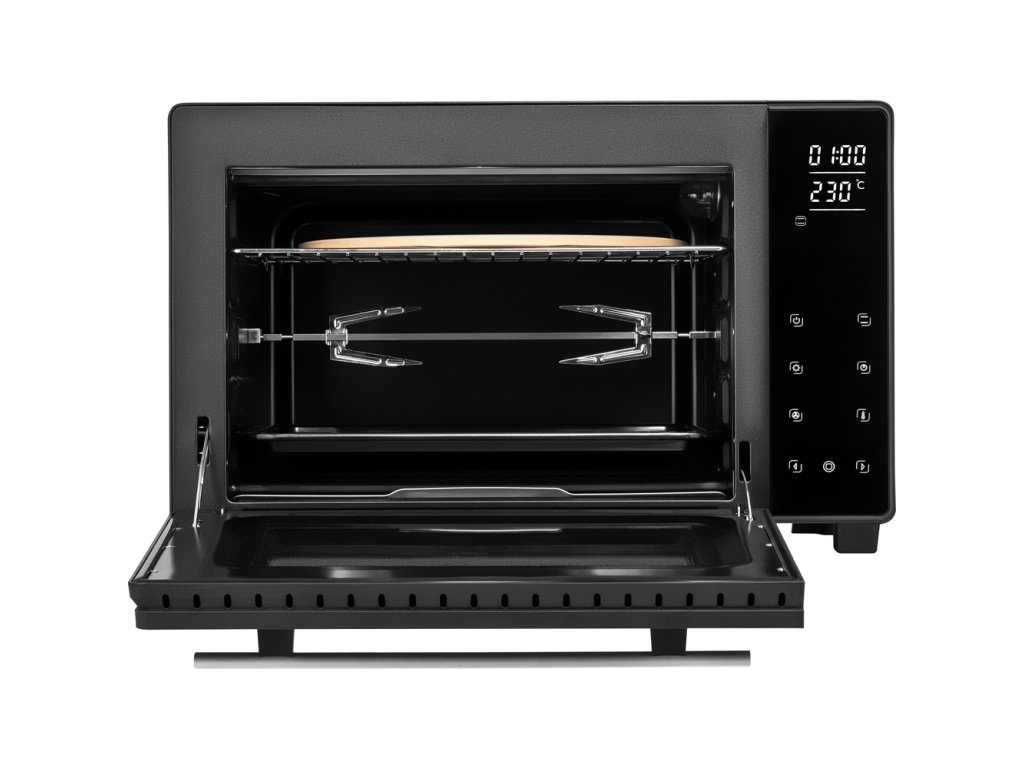 Sencor SEO 3250BK – elektrická trouba 35 l, 1700 W, dotykové ovládání, 9 programů, rožeň, časovač, gril i rozmrazování.