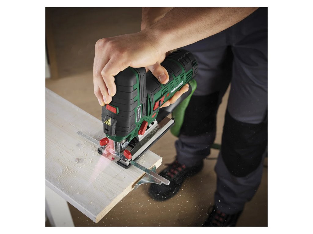 Síťová přímočará pila PARKSIDE PSTK 800 D3 s výkonem 800 W je ideálním pomocníkem pro domácí kutilské i dílenské práce. Díky robustní konstrukci, laserovému vedení, LED osvětlení a nastavitelnému kyvadlovému zdvihu umožňuje rychlé a přesné řezy v dřevě, hliníku i lehkých kovech.