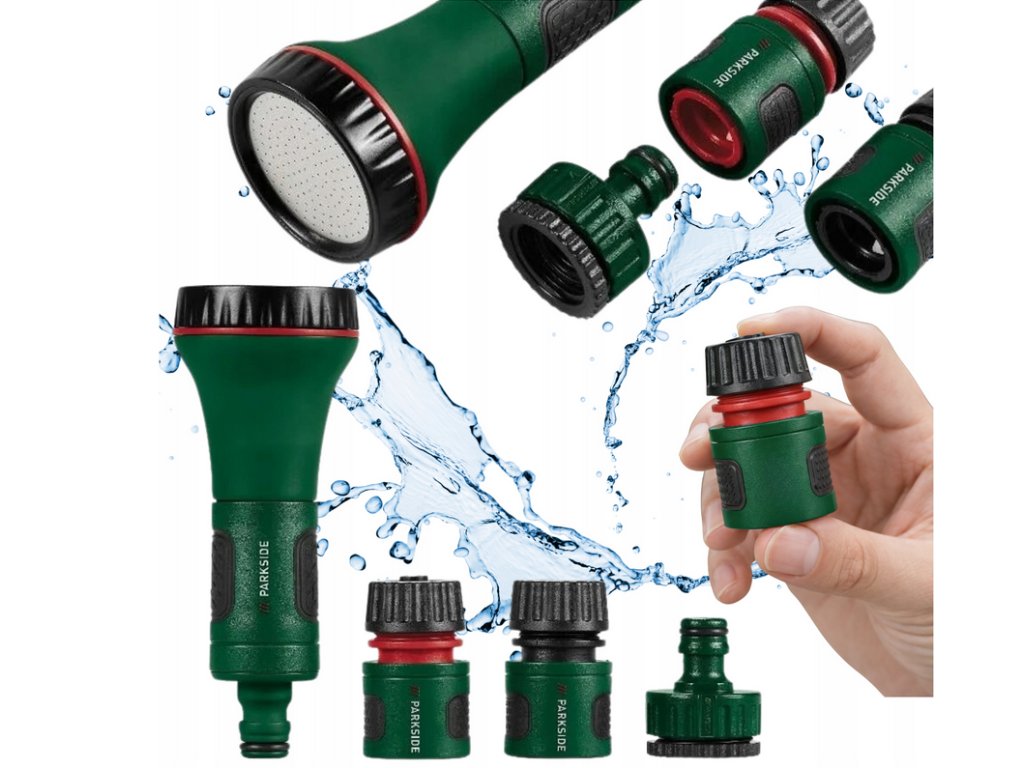 Systém Parkside Click činí soupravu vhodnou pro většinu standardních zahradních hadic, což usnadňuje rychlé připojení a používání.