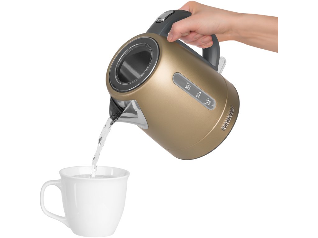 Malá, rychlá a výkonná konvice Sencor SWK 1020WH s kapacitou 1 ltr, výkonem 2200 W, průhledným ukazatelem vody, filtrem proti vodnímu kameni a automatickým vypínáním.