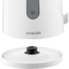 Malá, rychlá a výkonná konvice Sencor SWK 1020WH s kapacitou 1 ltr, výkonem 2200 W, průhledným ukazatelem vody, filtrem proti vodnímu kameni a automatickým vypínáním.