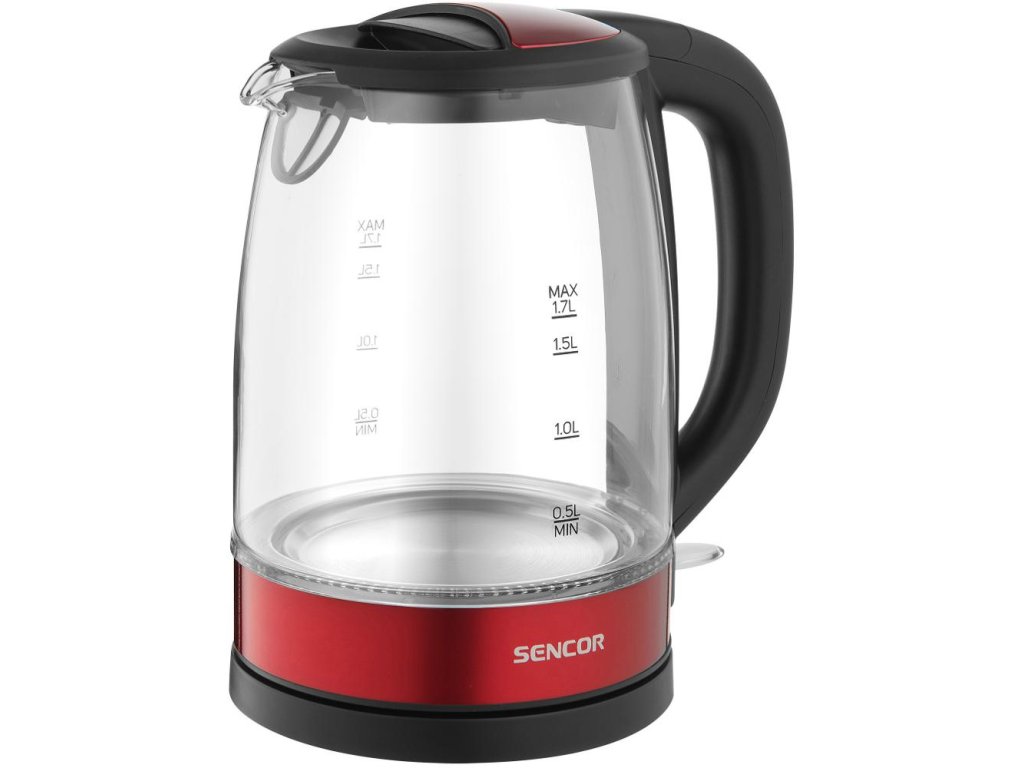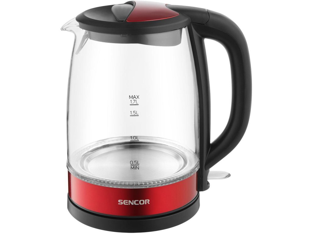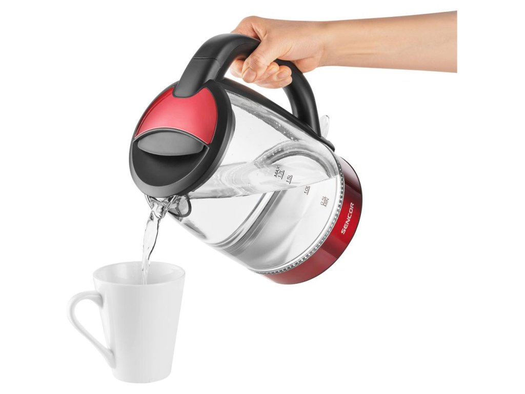 Kompaktní 1 l konvice Sencor SWK 1101BK s příkonem 1 100 W – skrytá spirála, oboustranný vodoznak, bezpečnostní aretační víko, filtr a 360° podstavec.
