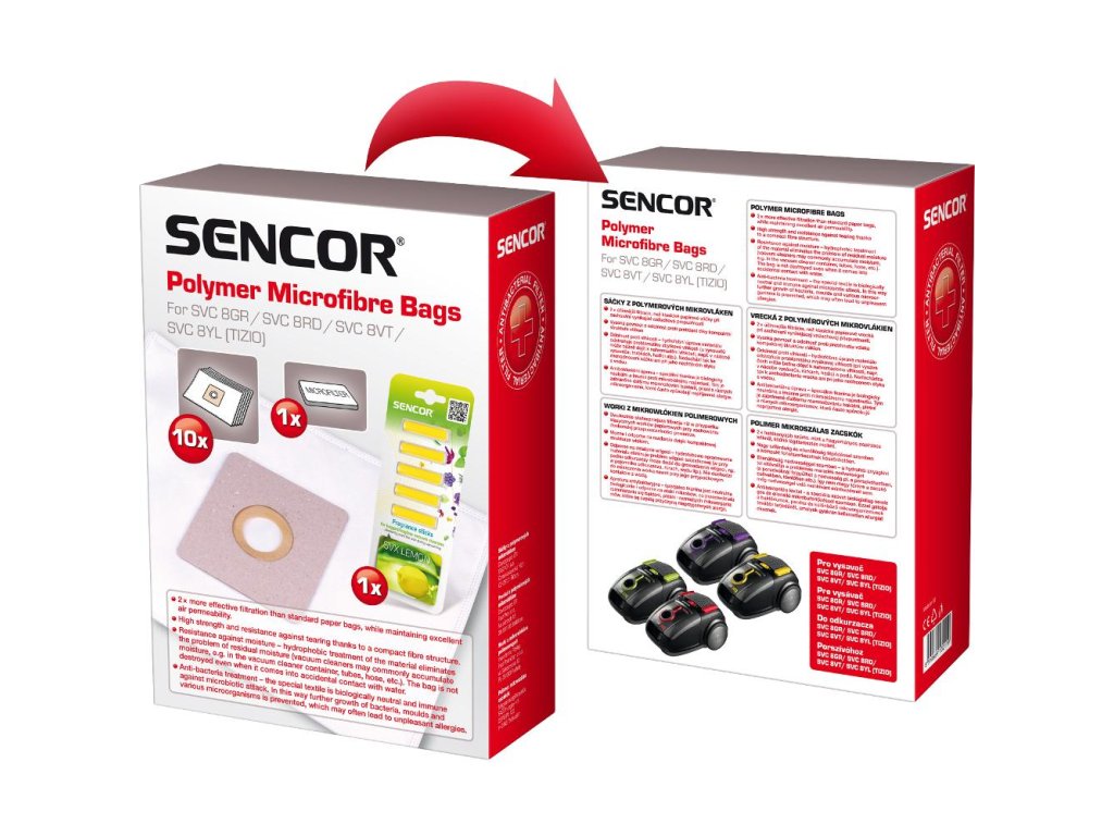 Balení 5 mikrovlákenných sáčků Sencor SVCX 0850 (3 l) – 2× lepší filtrace, hygienický uzávěr, odolné proti vlhkosti, antibakteriální pro modely SVC 55/60/83/85/93.