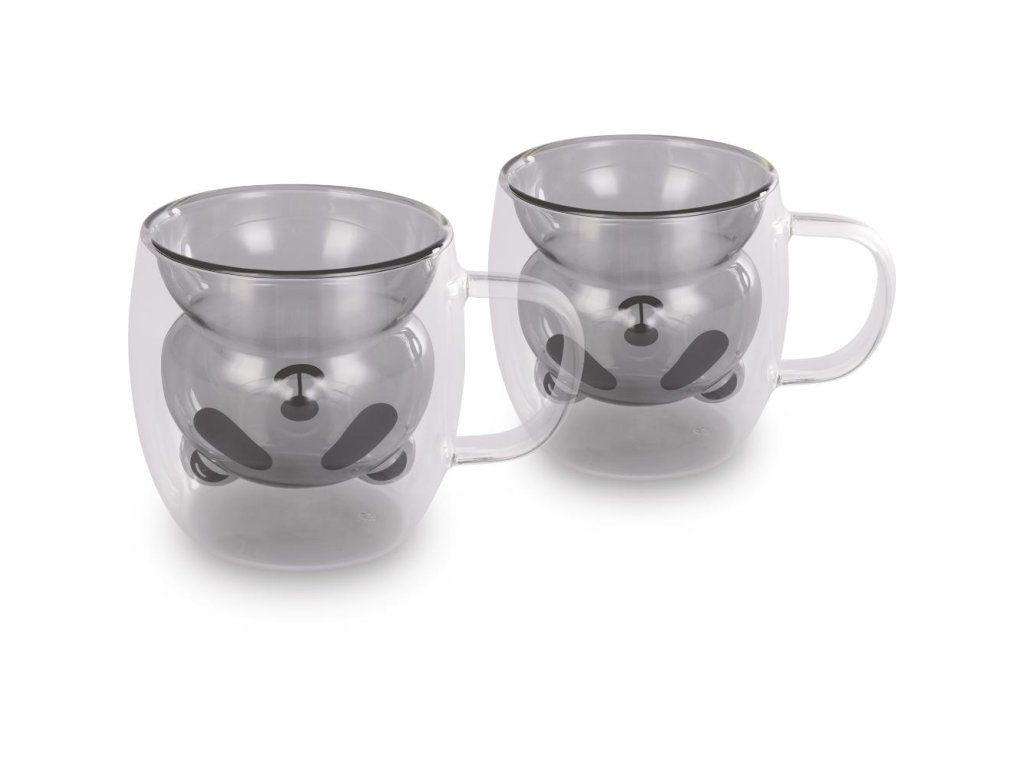 Dvoustěnné termo sklenice s motivem pandy, 2 × 230 ml, borosilikátové