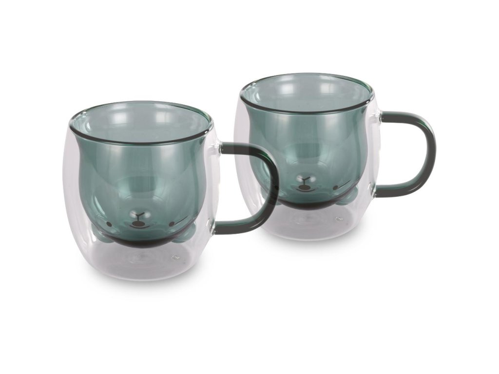 Dvoustěnné borosilikátové sklenice s medvídkovým motivem, 2× 250 ml, zelené, termo