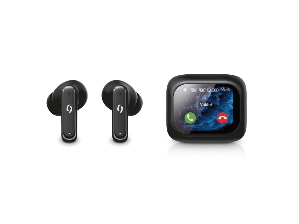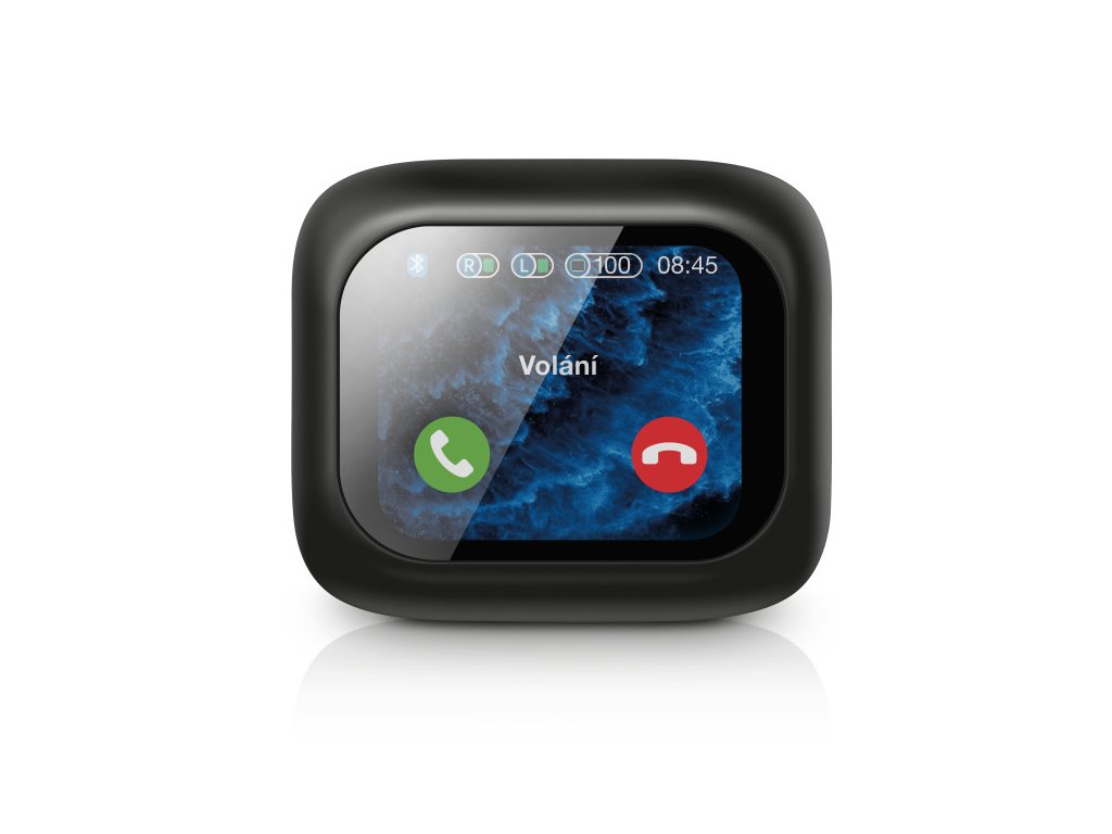 Na velkém displeji na nabíjecím pouzdře najdete širokou škálu užitečných funkcí, jako je přepínání skladeb, ovládání hlasitosti nebo přijímání a odmítání hovorů. Tyto intuitivní ovládací prvky máte vždy na dosah ruky, což zjednodušuje vaše každodenní používání.