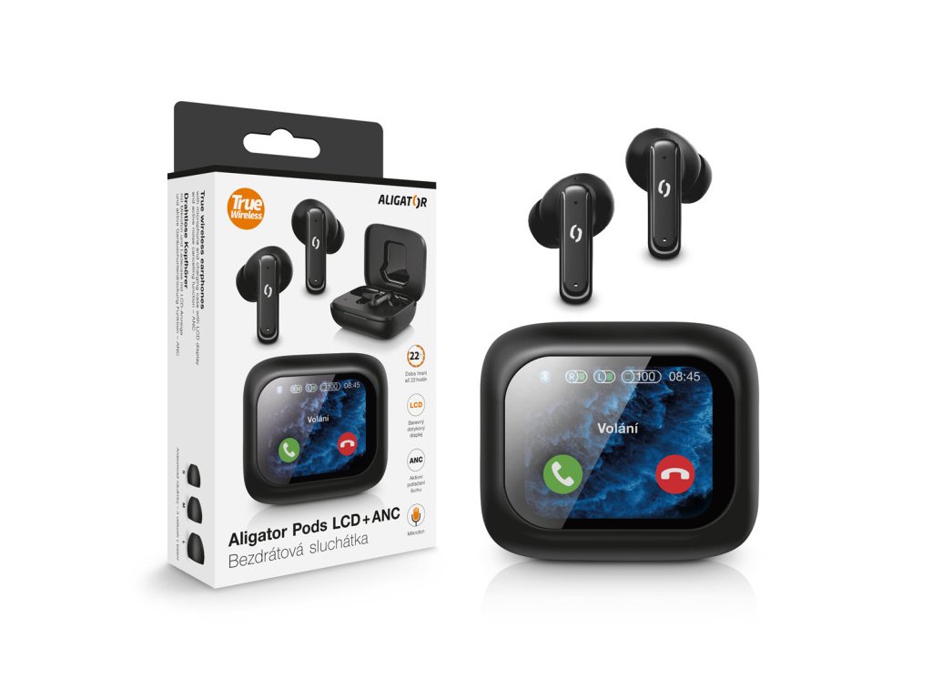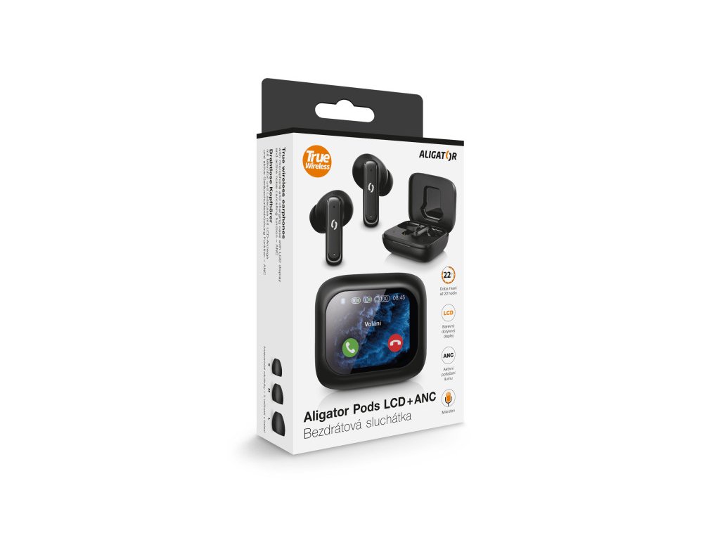 Bluetooth sluchátka Aligator Pods LCD + ANC, černá TWS07