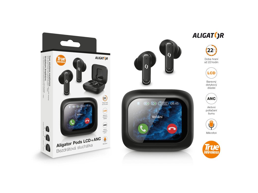 | Obsah balení: | Bluetooth sluchátka Aligator Pods LCD + ANC 3 velikosti náušníků Nabíjecí kabel Návod k použití |