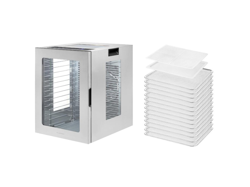 Příslušenství: 14 sušicích plat, 1 odkapávací tác, 1 silikonové síto
