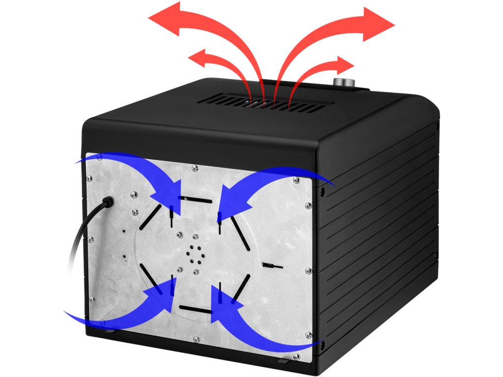 Integrovaný ventilátor s průměrem 17 cm zaručuje rovnoměrnému sušení na všech patrech